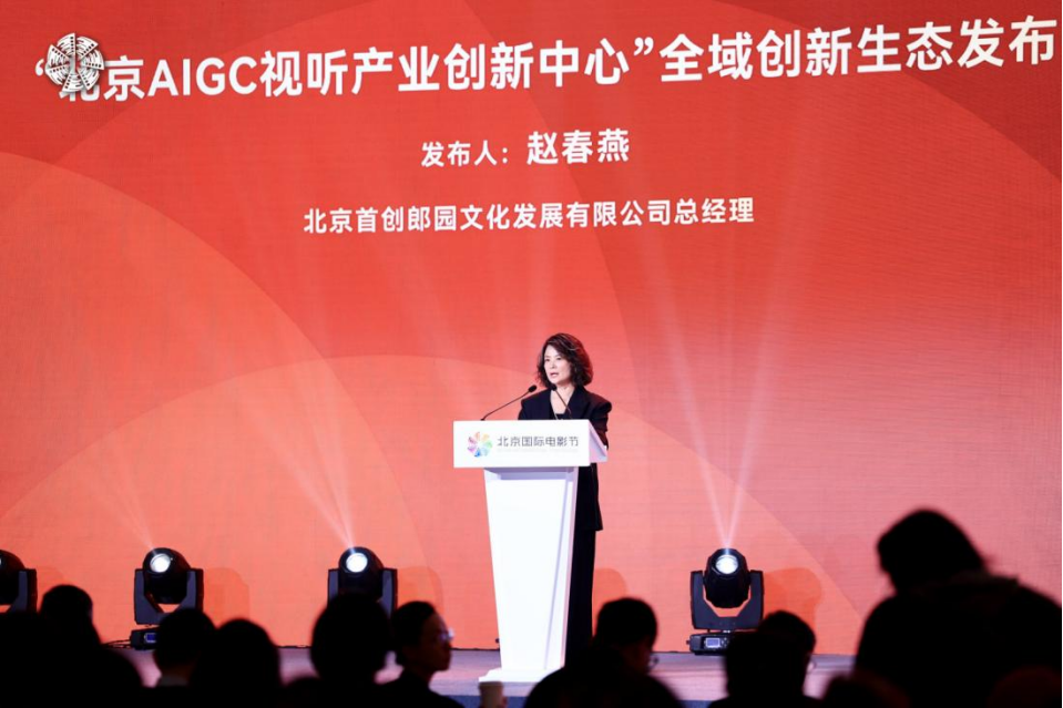 最后,北京首创郎园文化发展有限公司总经理赵春燕,现场发布了“北京AIGC视听产业创新中心”全域创新生态成果。该中心采用政府引导、市场主导、企业主体专业运营的市场模式,已汇聚近百家产业链上下游伙伴,搭建起全栈式服务平台。