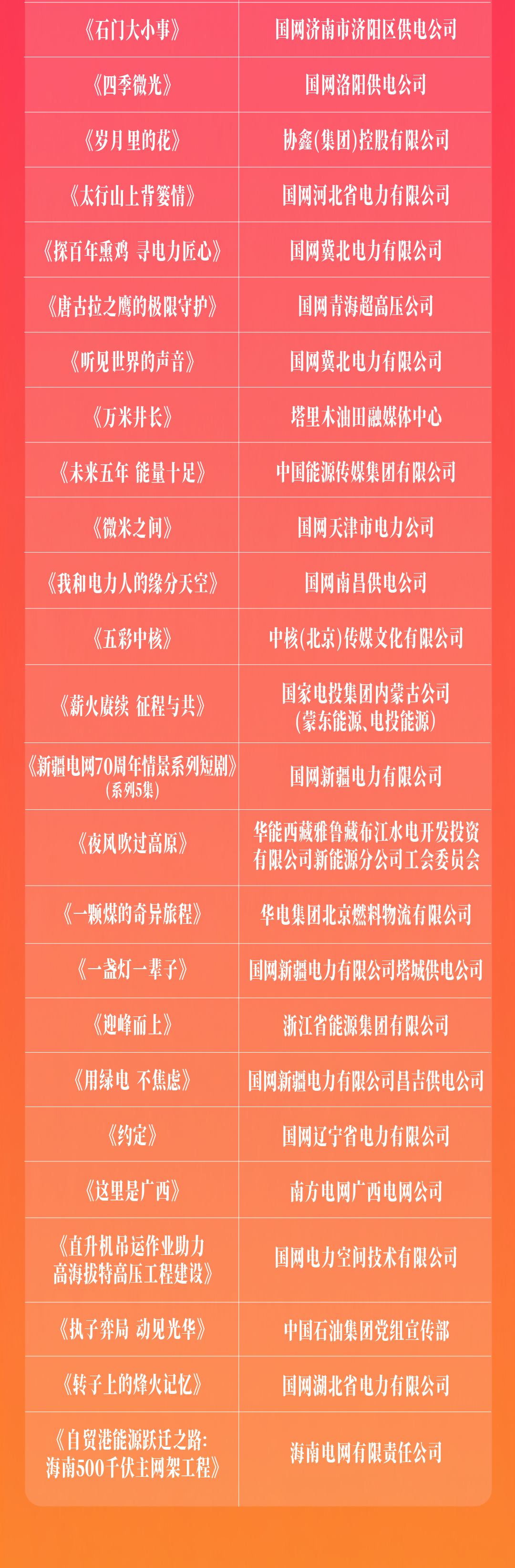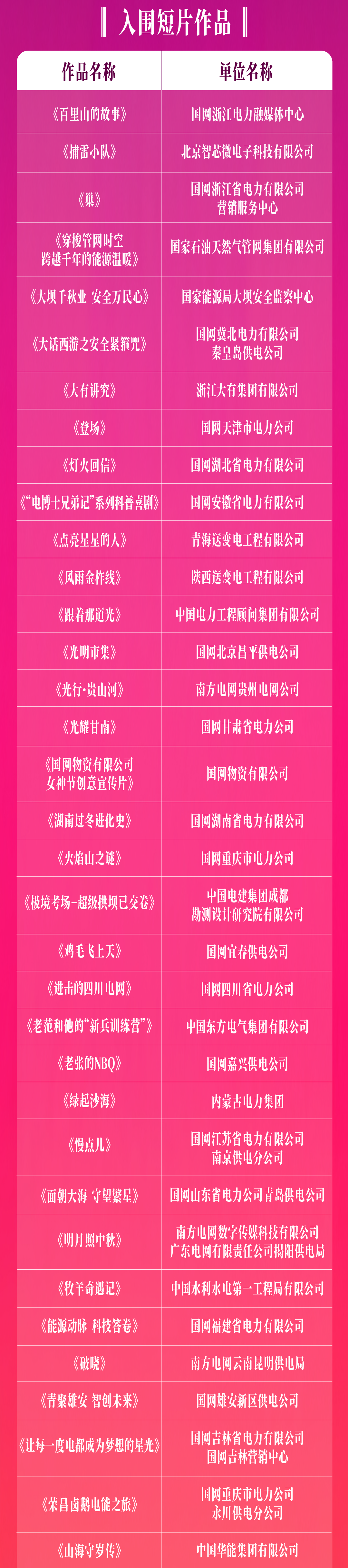 短片单元「能源中国·优秀短片作品」推荐名单