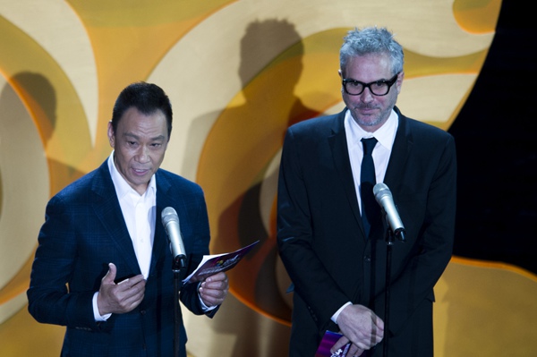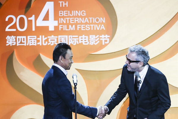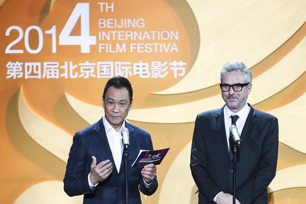 第四届北京国际电影节开幕式内场 王学圻联手阿方索-卡隆介绍入围影片